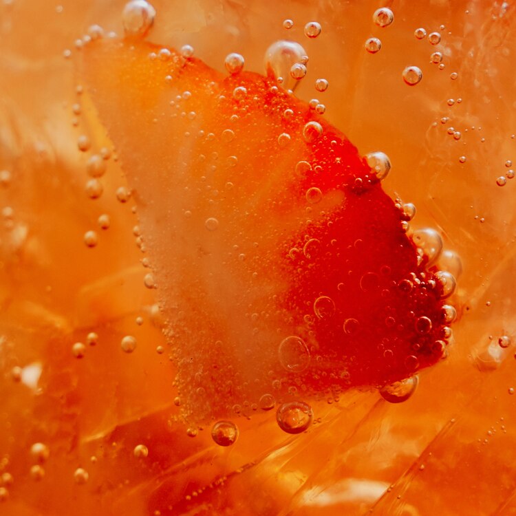 1 In a glass, place the strawberries and ice cubes.
